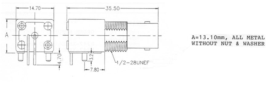 Produktinformation til BNC Receptacle Printtype 50 Ohm, full metal, 90°