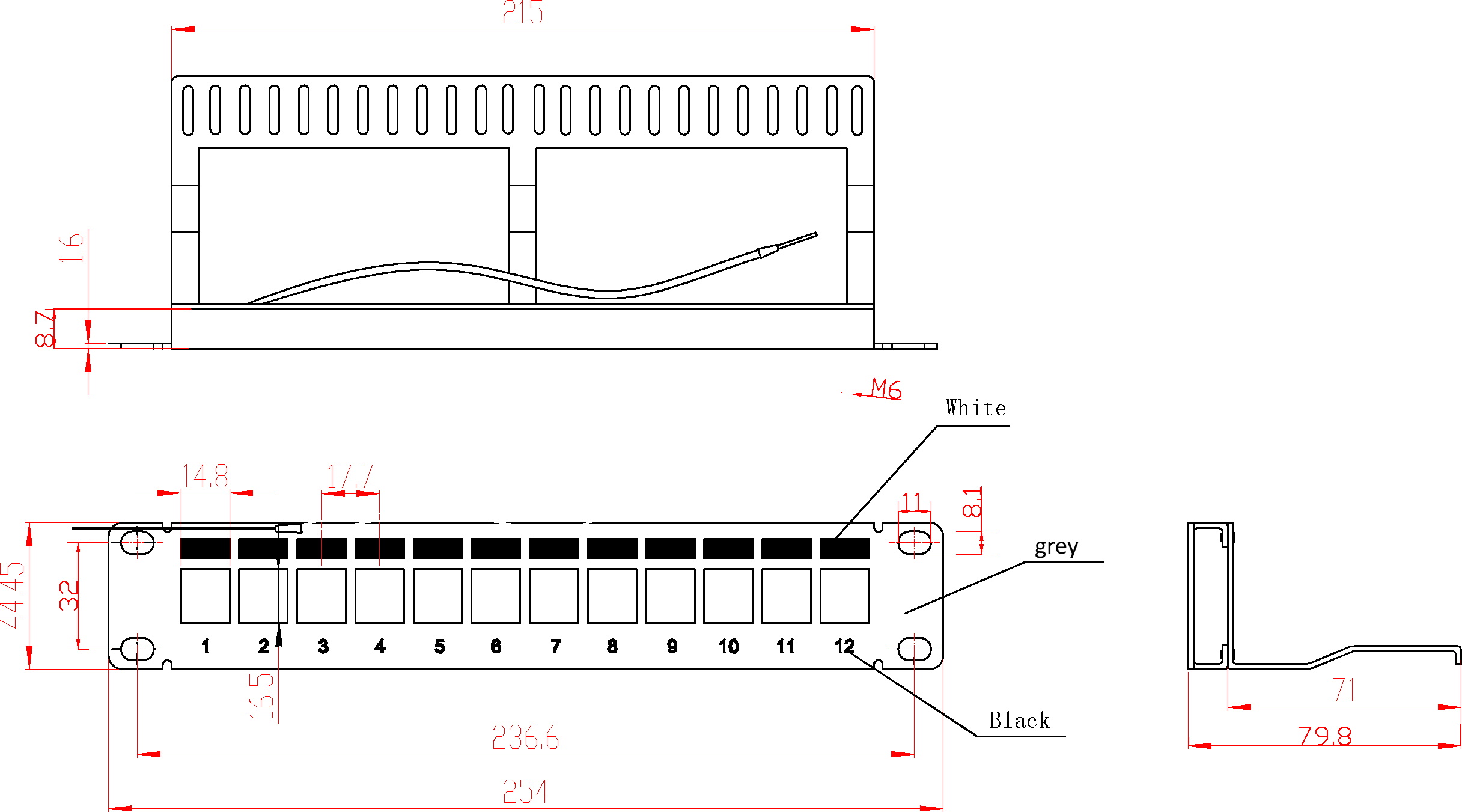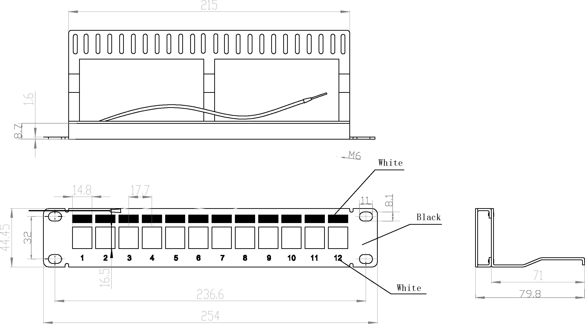 Distribution panel 10" 1U 12-port, metal