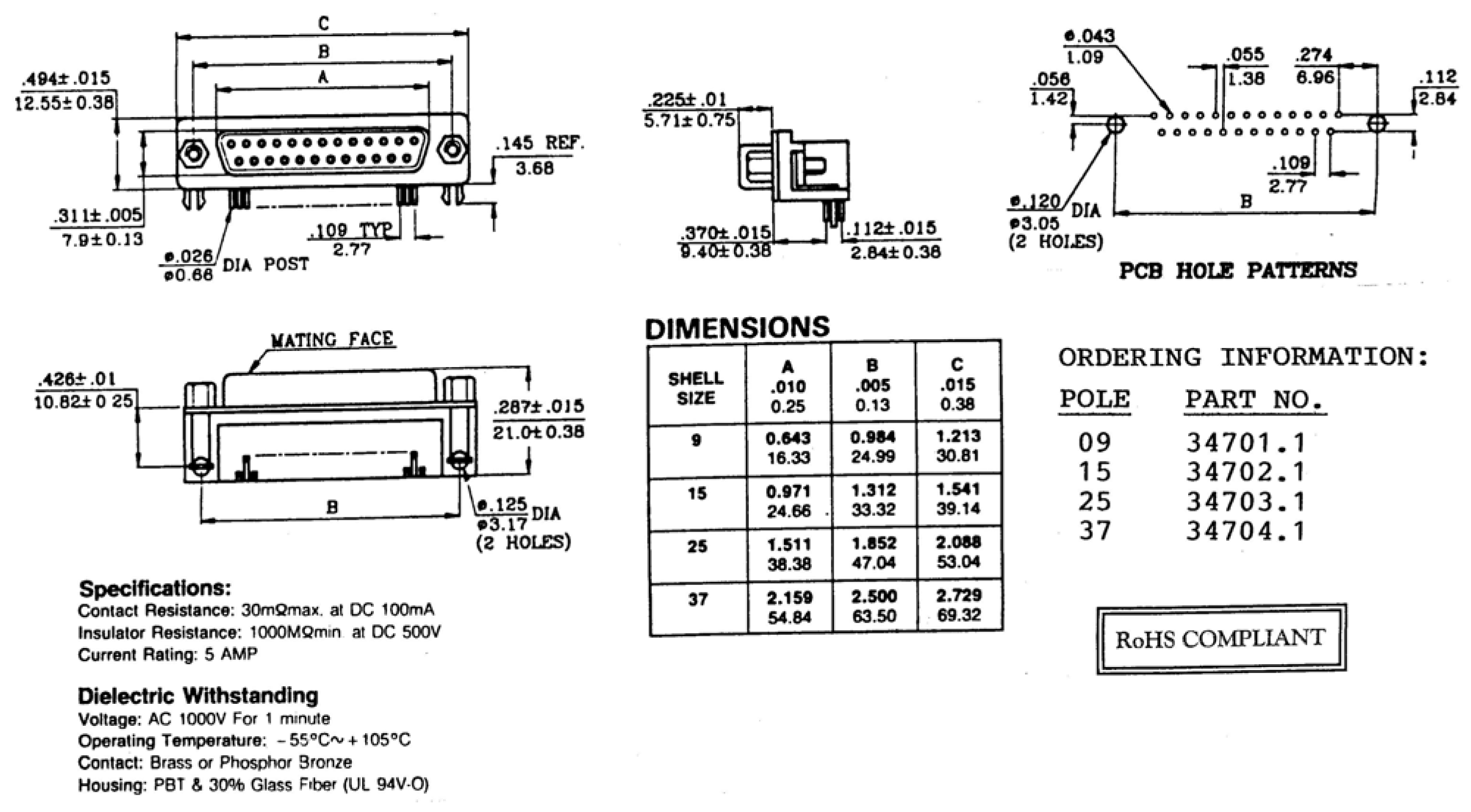 34703.1 DSub Jack 9.4mm Euro Standard, EDF 25 A/KG-T1 EDF 25 A/KG-T1 25