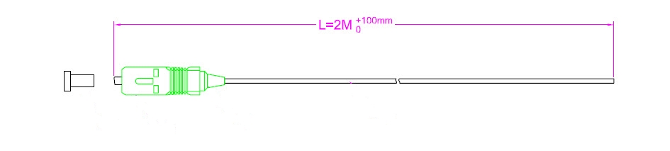 Das SC Faserpigtail hat ein Primärcoating (900µ) in der Farbe der jeweiligen Kategorie (siehe Tabelle). Die Farbe des Primär- und Sekundärcoating ist identisch. Da standardmäßig in Losgrößen zu je 12 bestellt wird, befinden sich in einem Polybeutel 12 Pigtails. Die separat verpackten Stecker ermöglichen eine schnelle und komfortable Entnahme jedes einzelnen Pigtails. Jeder Polybeutel beinhaltet ein individuelles Meßprotokoll.