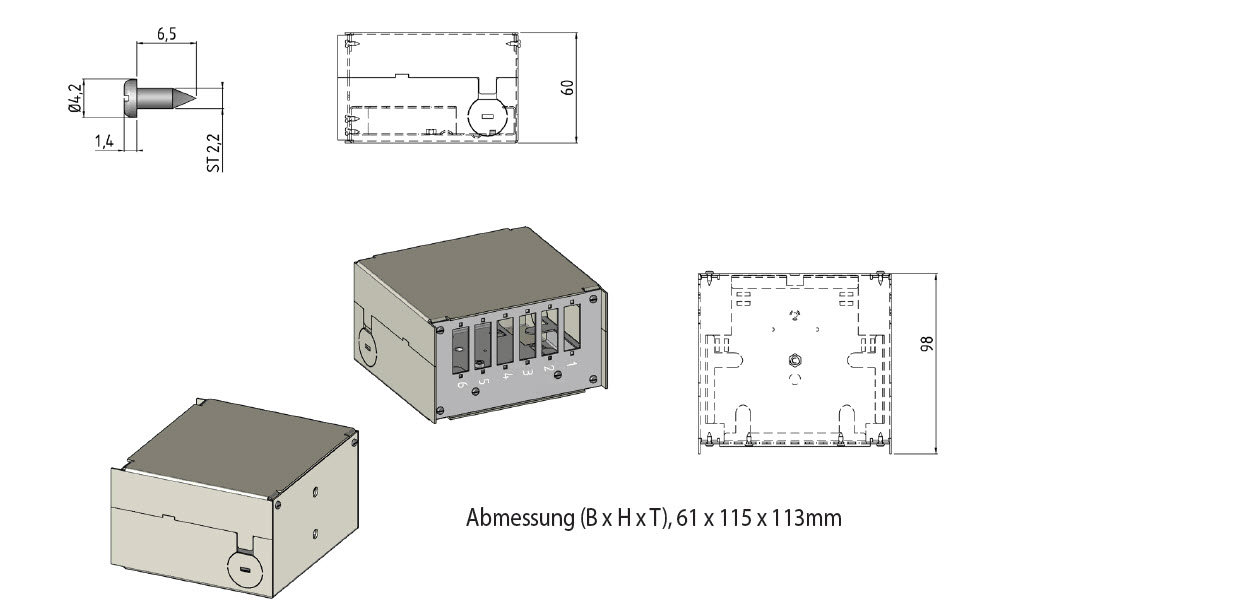1 x splice holder for 12 crimp splices (Attach of an optional additional splice holder only with double-sided adhesive tape)