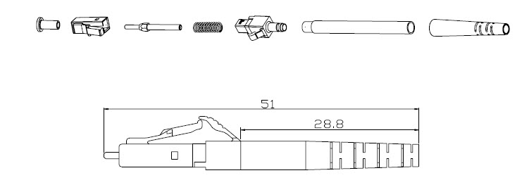 Produktinformation til LC/APC8°-connector simplex Singlemode, preangled
