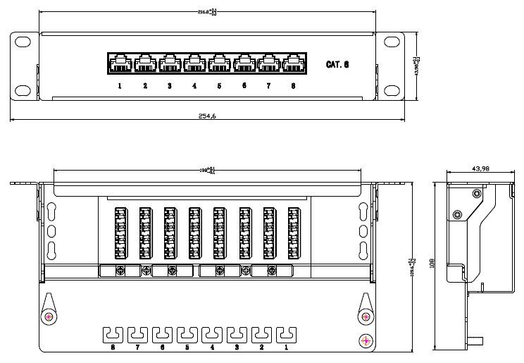 Mini-Patchpanel STP 8xRJ45 Cat.6, 10“ 1U