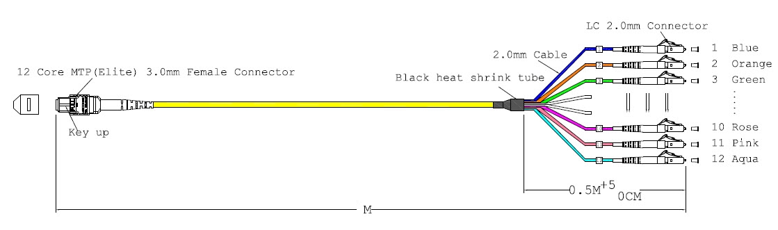 | MTPF12LCOS2-15 | MTP®-F/LC 12-fiber patch cable OS2 | 12 | 1 x MTP® female | 12 x LC | 15.0 m |
