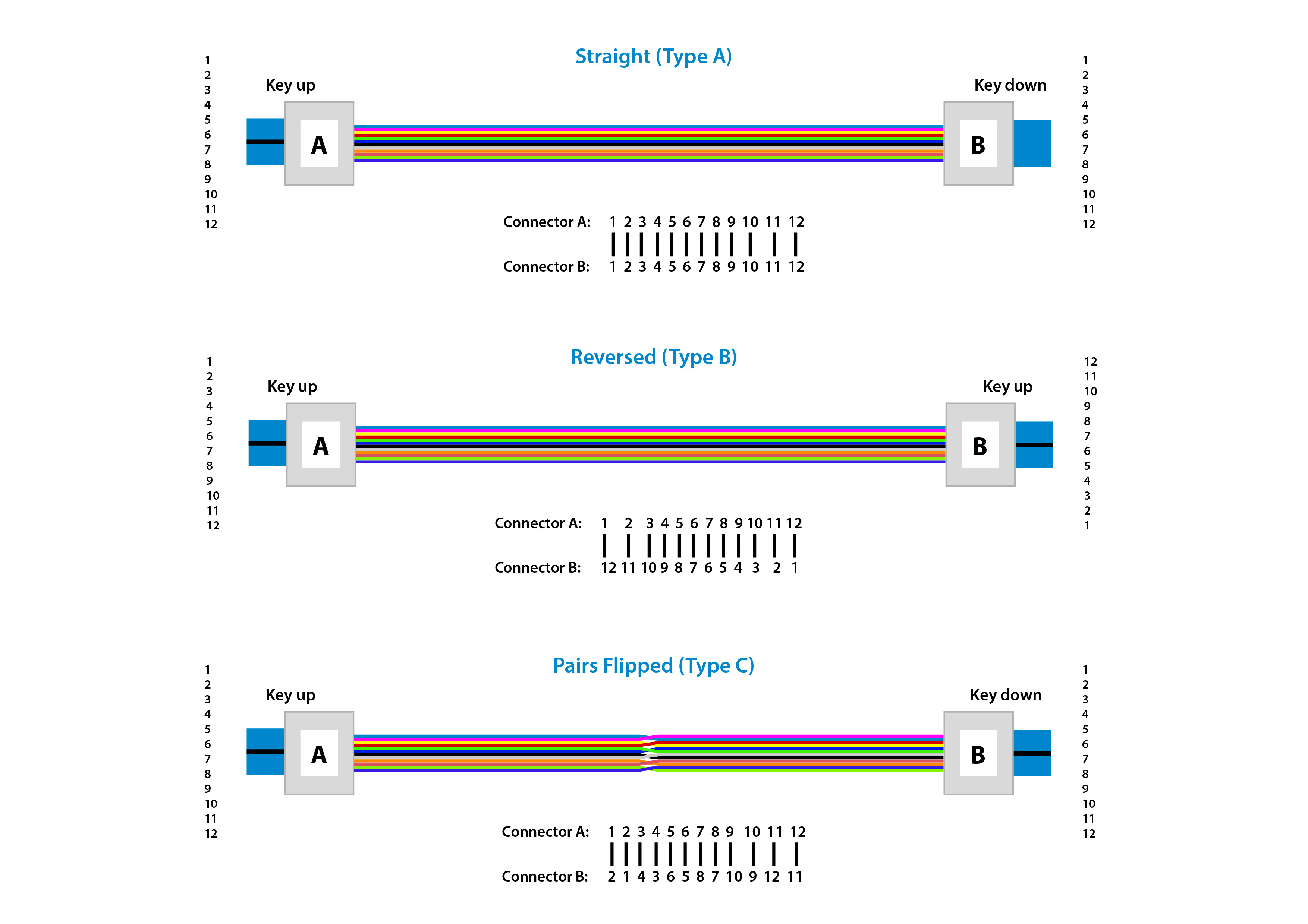 Note: In each MTP® transmission link, a type B (crossed) patch cable is required