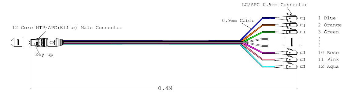 Produktinformation til MTP®/APC(M)-LC/APC Fanout cable OS2 12 fibers Typ B LSZH yellow 0,4m