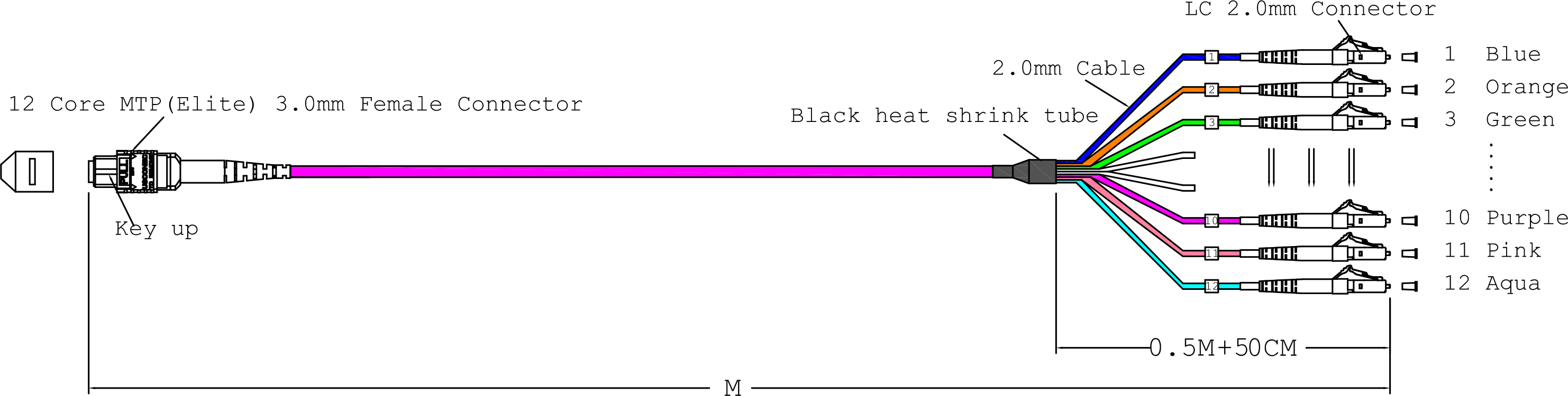 | MTPF12LCOM5-7,5 | MTP®(F)-LC Trunk cable OM5 12 fibers Typ B LSZH limegreen 7,5m | 12 | 1 x MTP® female | 12 x LC | 7.5 m | |