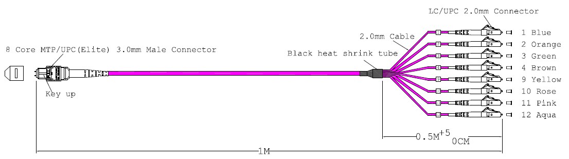 | MTPM08LCOM4-1 | MTP®(M)-LC Fanout cable OM4 8 fibers Typ B LSZH erica-violet 1m | 1 x MTP® male | 8 | 8 x LC | 1.0 m |