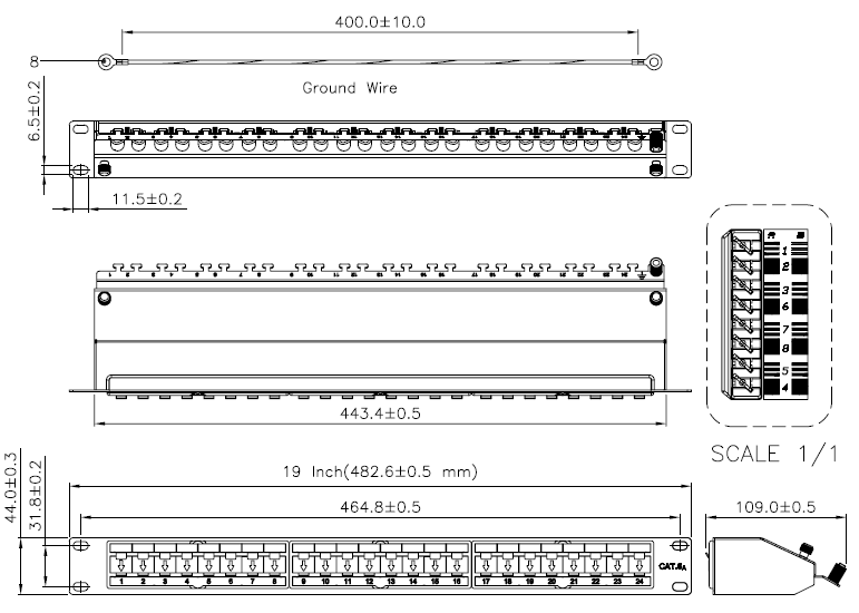 Produktinformation til Patchpanel STP 24xRJ45 Cat.6A/Class EA, 19“ 1U, RAL9005 black