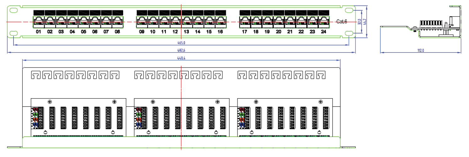 The high quality of the unshielded Cat.6 RJ45 patch panel ensures excellent performance for 5 Gigabit Ethernet applications.