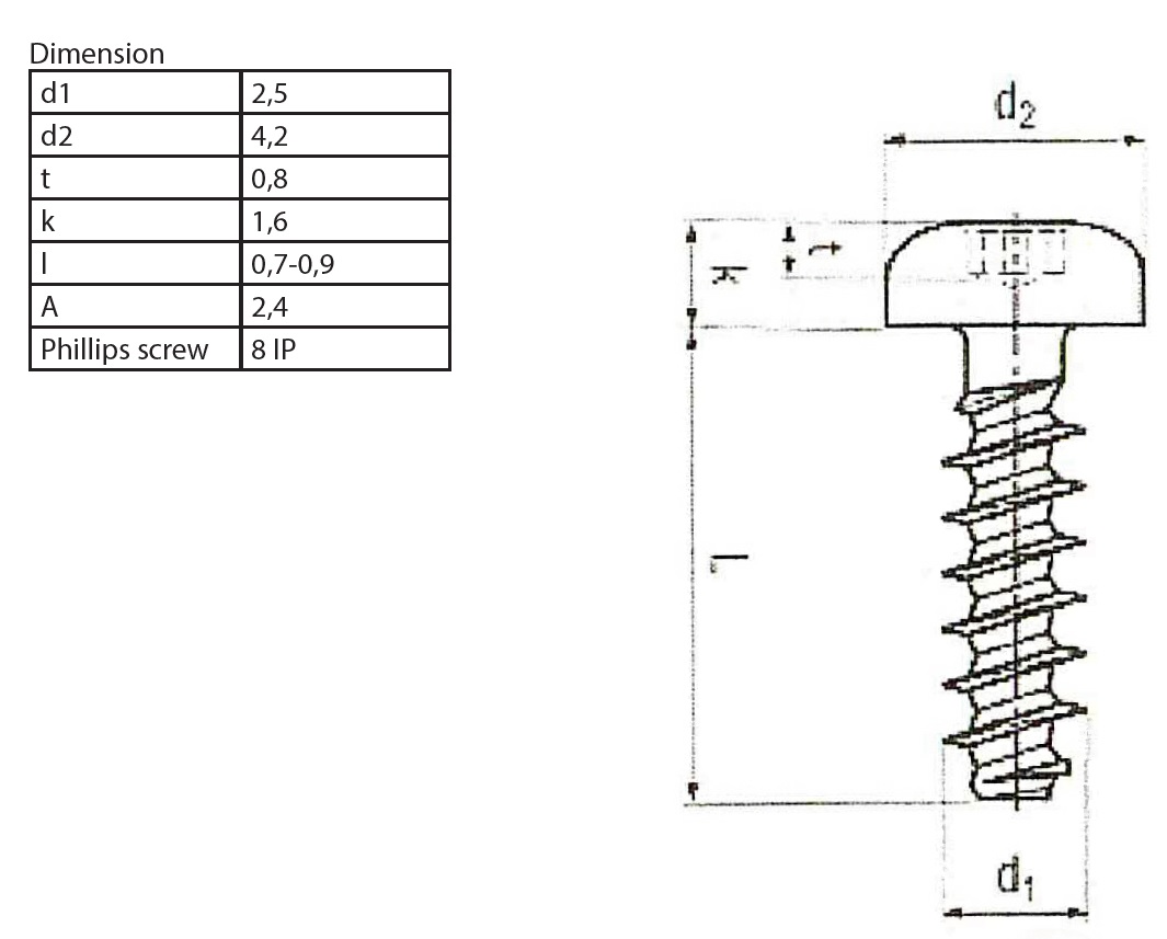 Produktinformation til Tapping screw ST2,5 50pieces DIN7971