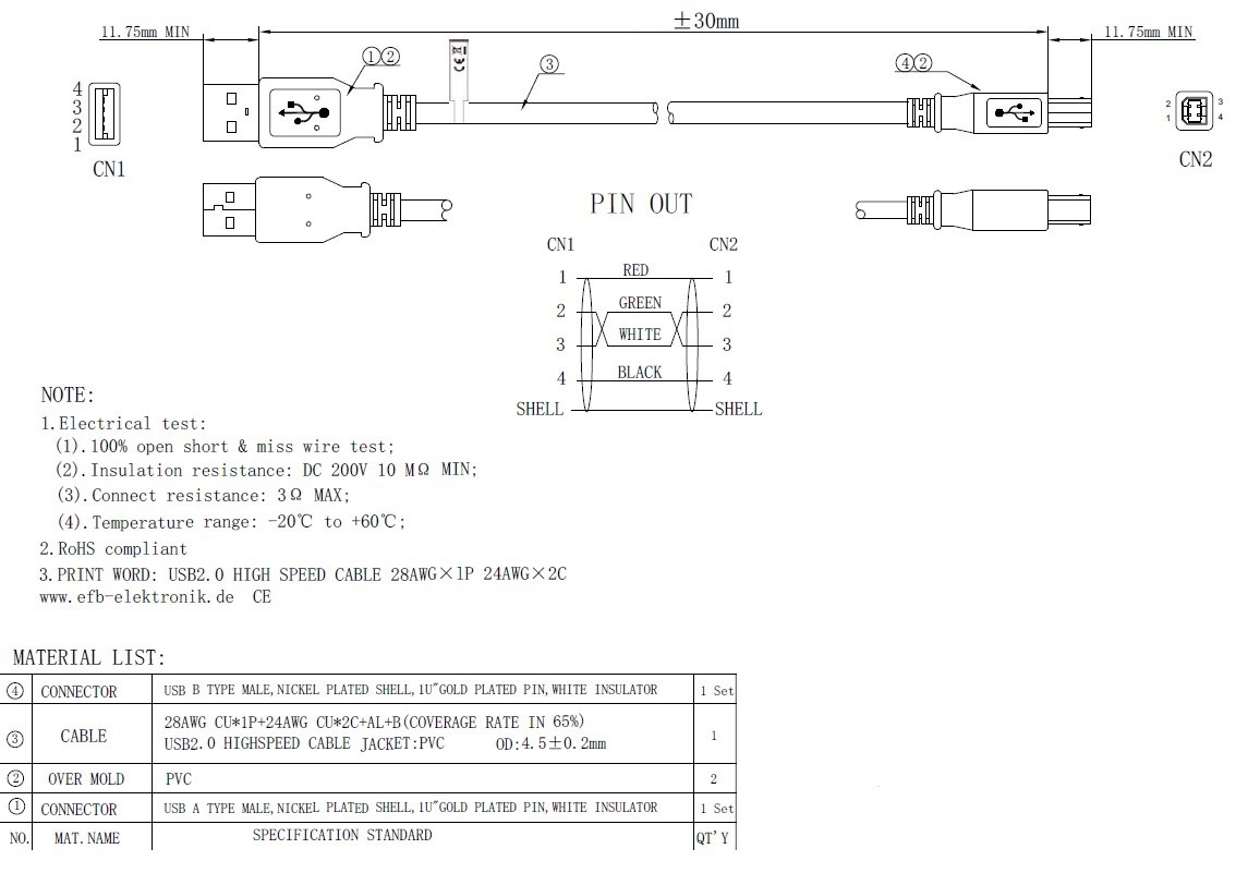 Printing: USB2.0 HIGH SPEED CABLE 28AWG×lP 24AWG×2C www.efb-elektronik.de CE