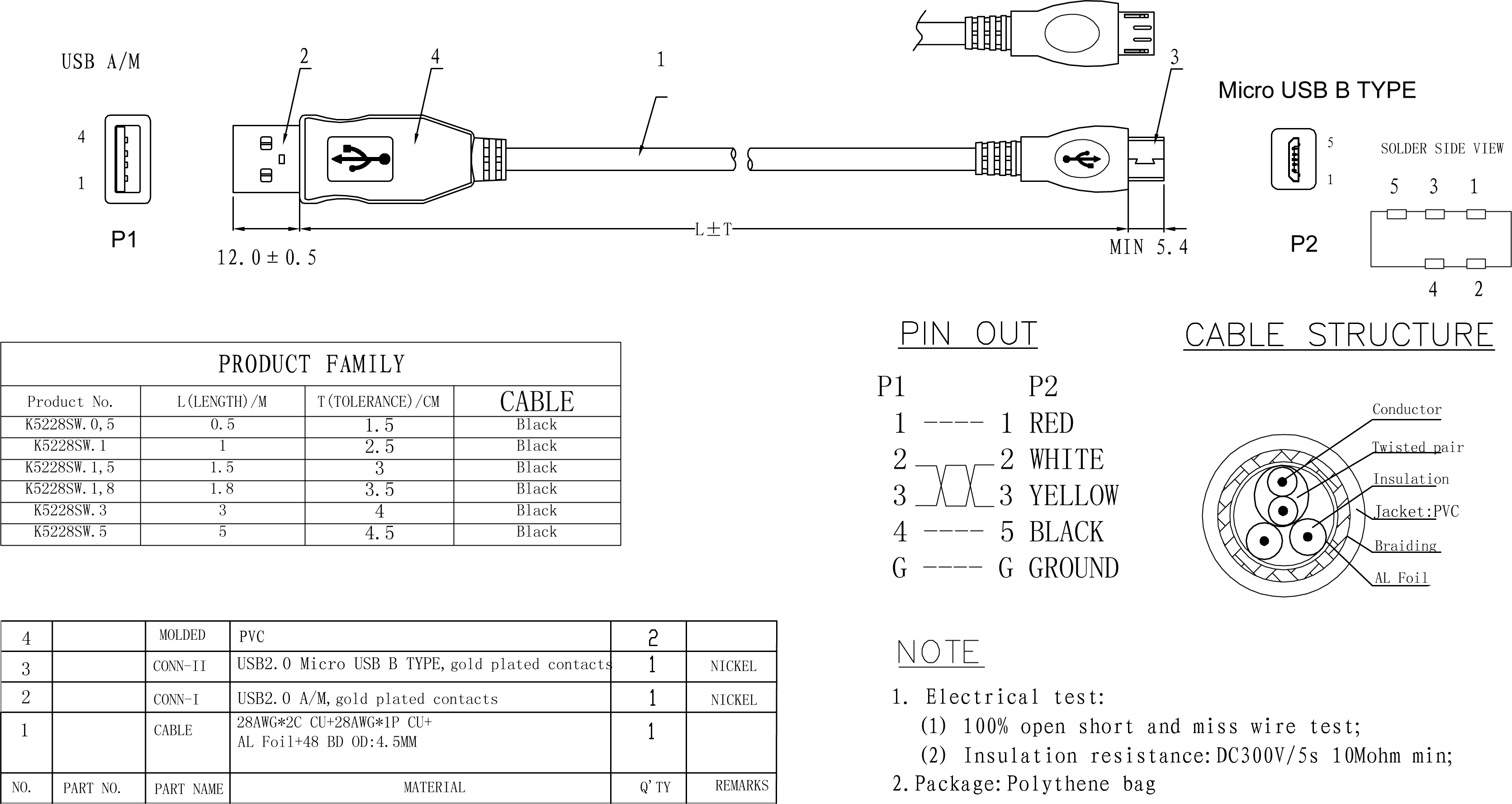 | K5228SW.1V2 | USB2.0 Connection Cable A-Micro-B 5pol., M-M, 1 m, black, Classic | black | 1.0 m | 4.0 mm | 28AWG | |