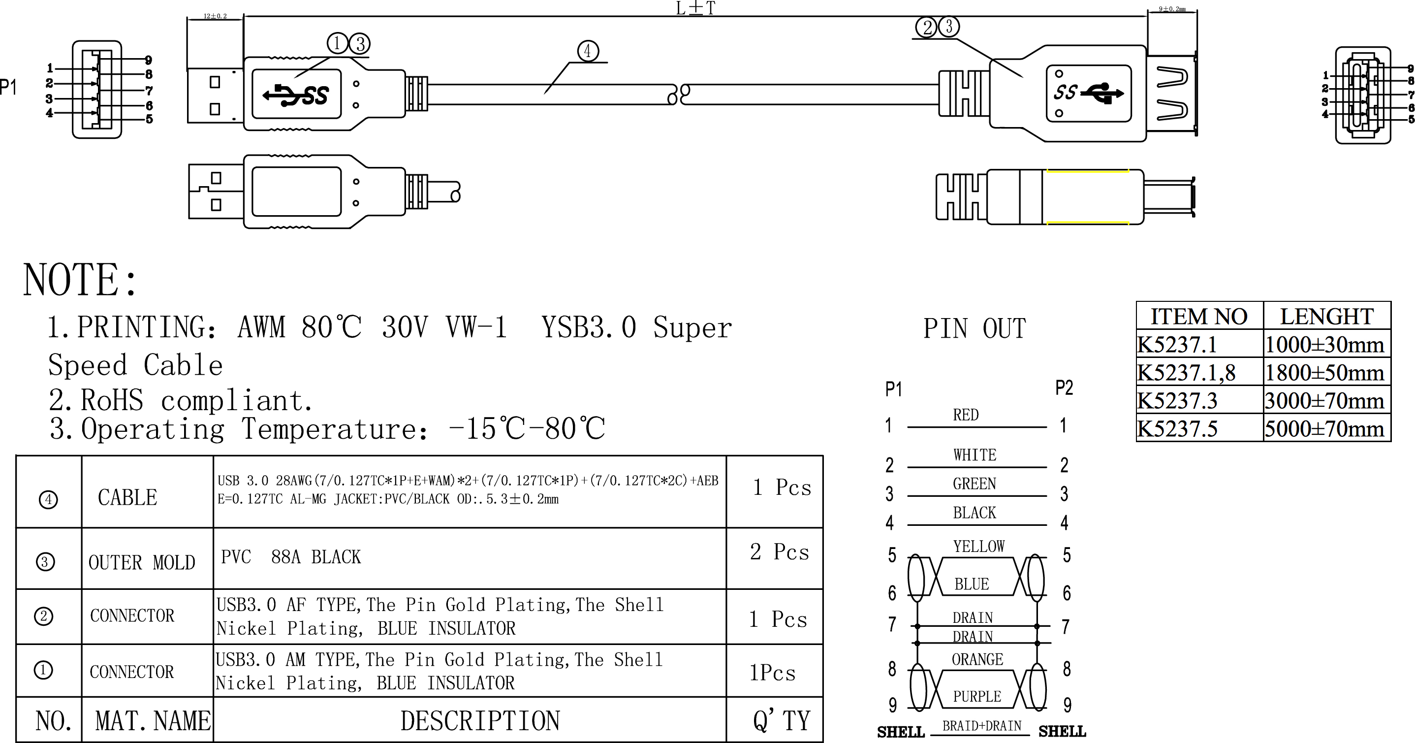 | Printing: | USB3.0 SUPER SPEED PREMIUM CABLE AWM STYLE 2725 80°C 30V AWG30/AWG20 |