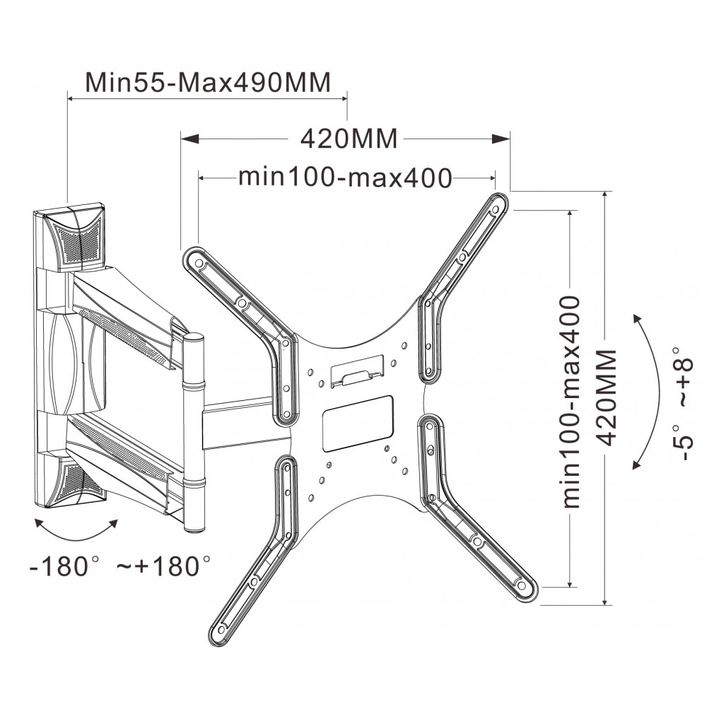 Supports VESA from 100x100 to 400x400 mm